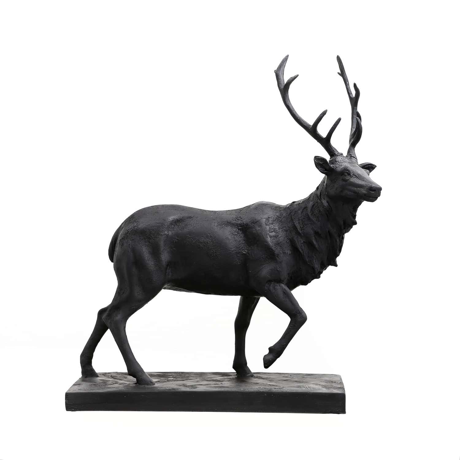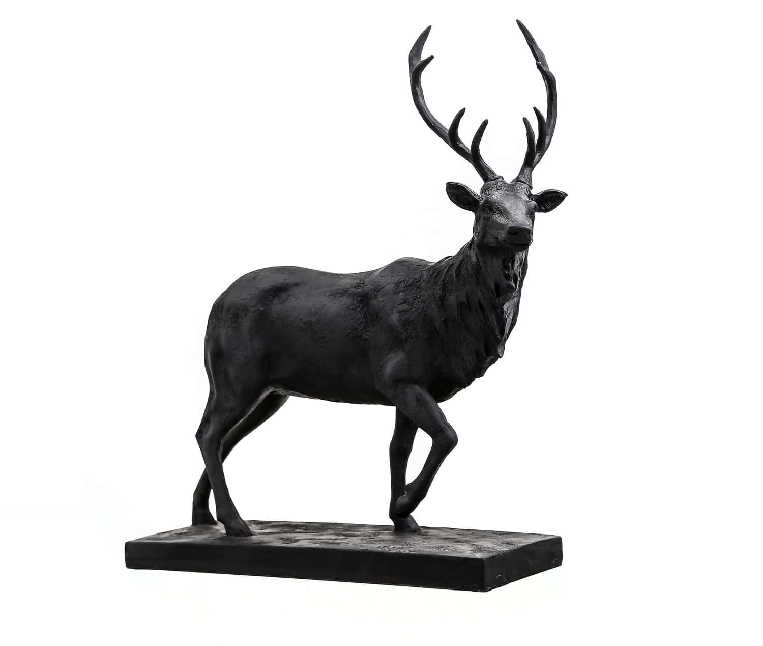 The Large Black Stag Ornament adds a bold and stylish statement to your home décor. Crafted from resin with a sleek black finish, this stag figurine is perfect for displaying on shelves, tables, or mantels. Its detailed design and dynamic stance make it an eye-catching feature in any room.