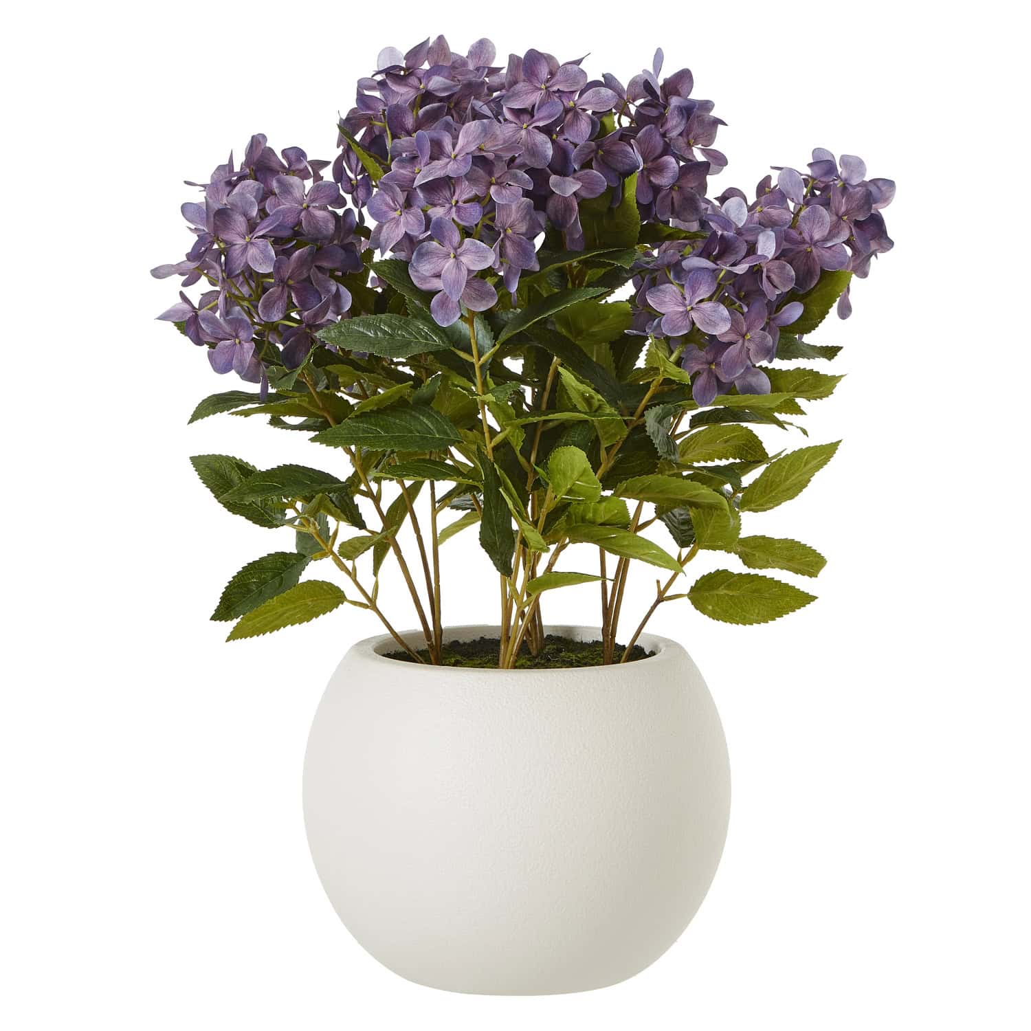Brighten up your space with the Medium Purple Hydrangea Plant In Pot. This realistic artificial plant brings vibrant color and a fresh look to your home or office. Made from durable plastic, the lifelike purple blooms and green leaves are housed in a simple pot that fits seamlessly into any room. The medium size makes it perfect for adding a touch of nature to tables, shelves, or windowsills without the need for maintenance.