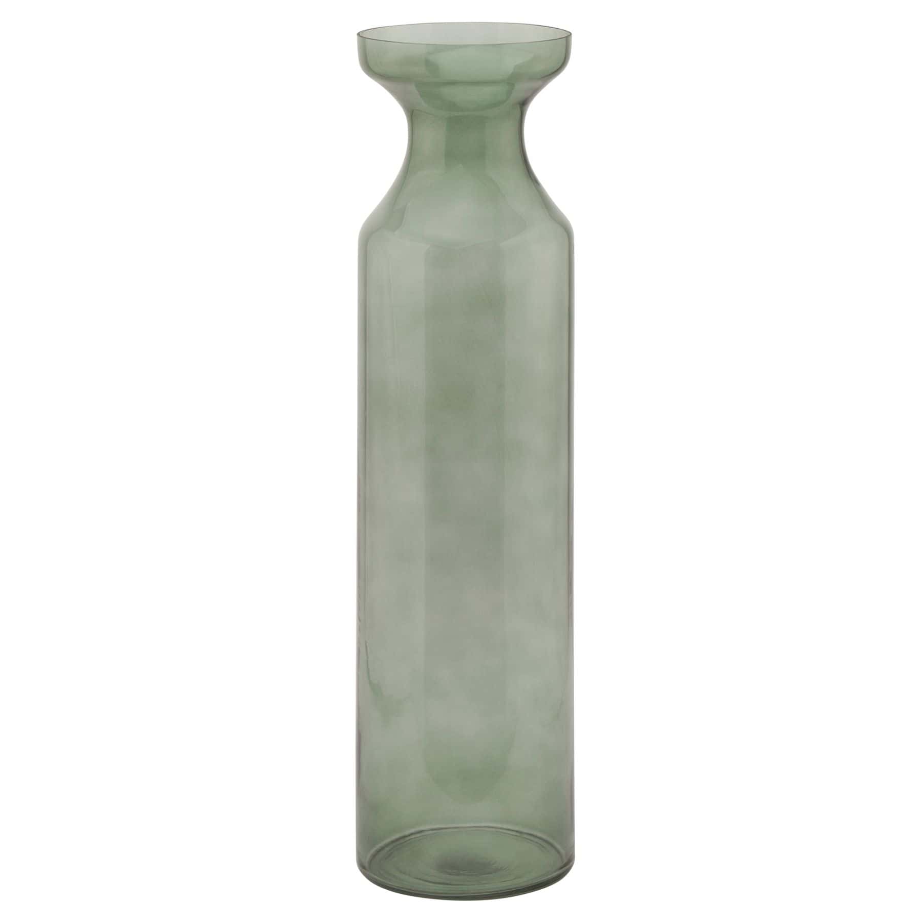 Smoked Sage Glass Tall Fluted Vase